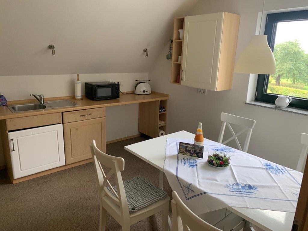 - Die Küche der Ferienwohnung ist komplett ausgestattet.